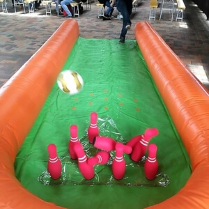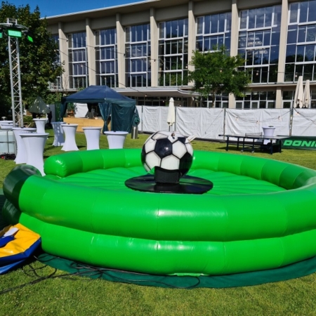 Gleiches gilt für den Menschenkicker, in dem zwei Teams aus lebenden Kickerfiguren gegeneinander antreten. Spaß für Spieler und Zuschauer ist bei diesem Kicker im XXL-Format ebenso garantiert wie beim Bubble Soccer. Bei dieser spaßigen Fußball-Variante schlüpfen die Spieler in riesige aufblasbare Bumper Balls, die den Körper schützen.