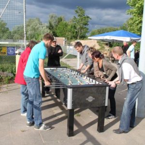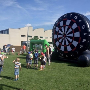 So zum Beispiel unsere riesige Fußball-Dart-Scheibe, ein im wahrsten Sinne des Wortes überragendes Event-Highlight, das mit seiner imposanten Größe die Blicke auf sich zieht. Hier werden auch Fußballmuffel zum Mitmachen animiert.