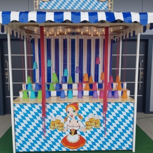 Oktoberfest Spiele Ideen wie Hau den Lukas, Maßkrugschieben oder ein Nagelbalken und nostalgische Spielstände für Ballon- oder Dosenwerfen dürfen auf einem Oktoberfest nicht fehlen. Passend zum Motto Oktoberfest können Sie alle diese Attraktionen in den bayrischen Landesfarben blau und weiß bei uns mieten. Einem ausgelassenen Fest steht damit nichts mehr im Wege!