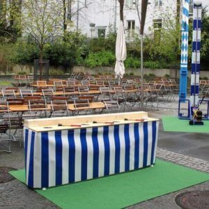 Um mit der richtigen Oktoberfest Dekoration das Flair einer richtigen Wiesn Party zu erzeugen, dürfen die passenden Buden und Hütten natürlich nicht fehlen. Bei uns können Sie verschiedene Oktoberfest Buden mieten, die Ihre Gäste in die passende Stimmung versetzen. Ob Würstchenbude, Brezenstand oder ein Stand für gebrannte Mandeln – wir haben für jeden Geschmack das passende Angebot. Kontaktieren Sie uns gerne für weitere Informationen und lassen Sie uns gemeinsam Ihre Oktoberfest-Party planen.