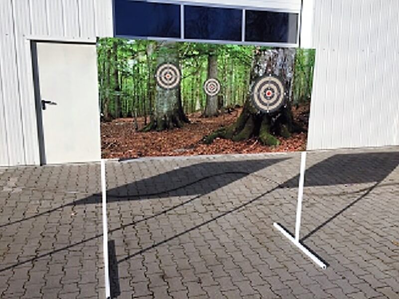 Armbrustschießen im Rahmengestell mit Saugnäpfen und Tisch