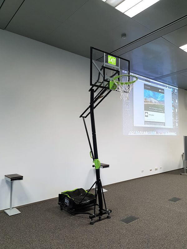 Crunchtime auf Ihrem Event! Mit unserer mobilen Basketballanlage schaffen Sie auf Ihrer Veranstaltung NBA-Atmosphäre. Große und kleine Basketballer können hier ihren Vorbildern nacheifern und spektakuläre Körbe erzielen – vielleicht gelingt sogar der eine oder andere Dunking. Die praktische Höhenverstellung (Höhen von 2,30 m, 2,45 m, 2,60 m, 2,85 m und 3,05 m sind möglich) sorgt dafür, dass verschiedene Altersklassen an dem Korb spielen können.