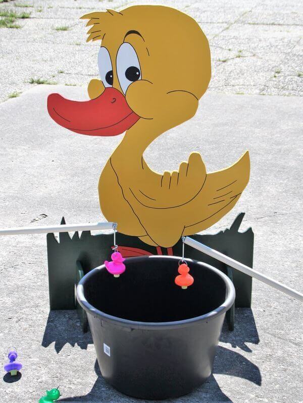 Entenangeln ist ein klassisches Spielvergnügen, das nie langweilig wird. Für die Kleinen ist es ein großer Spaß, die bunten Entchen aus dem Wasser zu angeln. Dabei werden sie von einer fröhlichen gelben Ente beobachtet, die unser Entenangeln zu einem echten Hingucker macht.