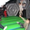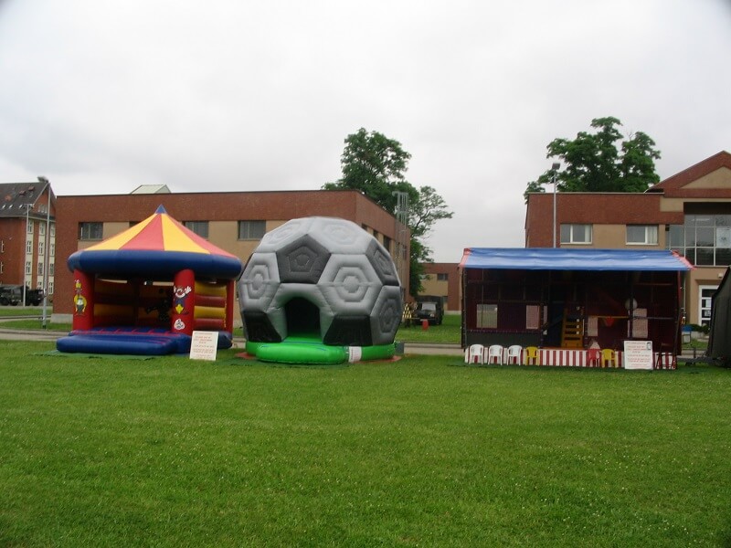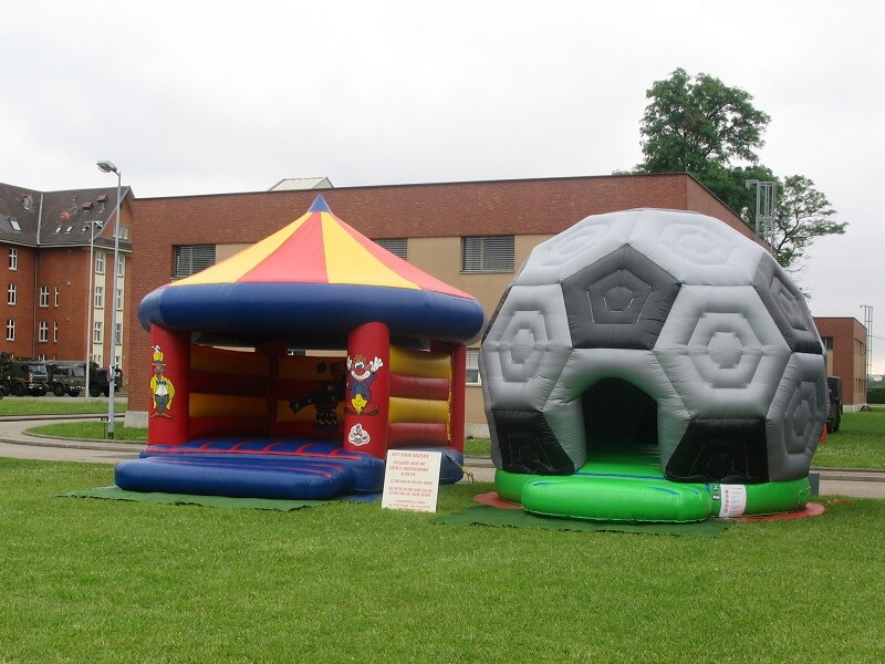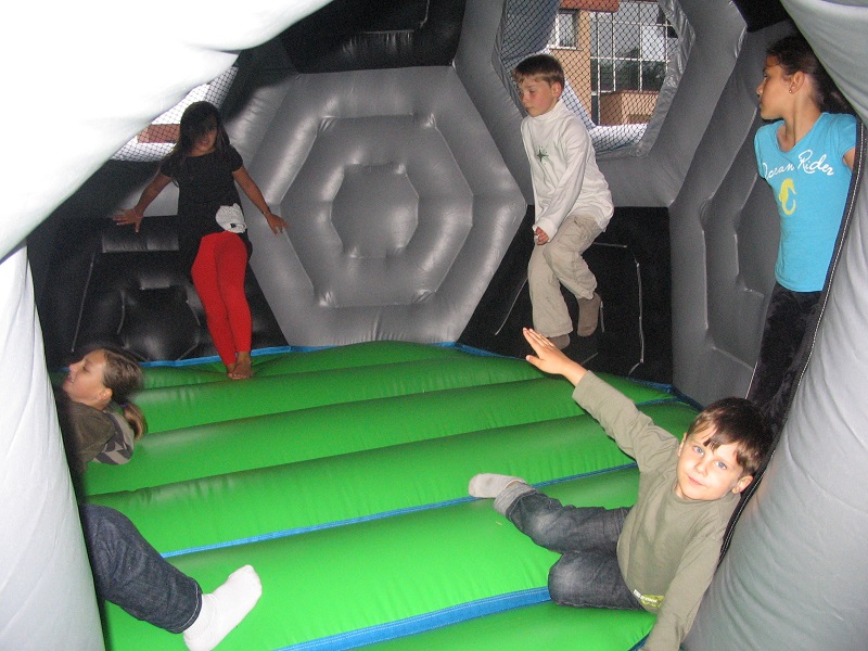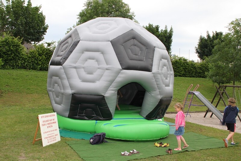 Durch das Dach unserer Fußball-Hüpfburg sind bis zu zwölf kleine Fußballer vor Regen und direkter Sonneneinstrahlung geschützt. Die Fenster der Hüpfburg dienen der Luftzirkulation und sind zur Sicherheit mit Netzen versehen. Es hindert die Mini-Kicker somit nichts, einen wunderbaren Tag auf Ihrem Event zu verbringen.