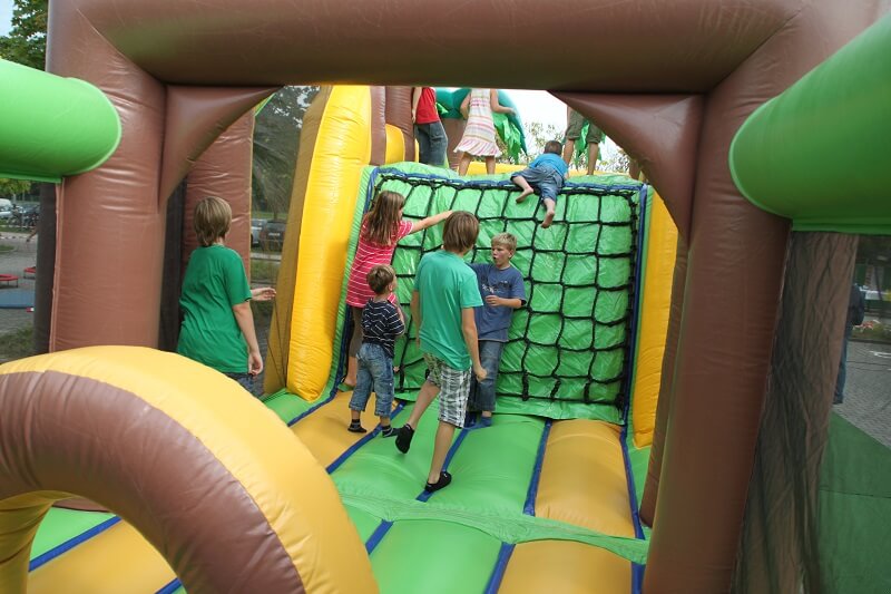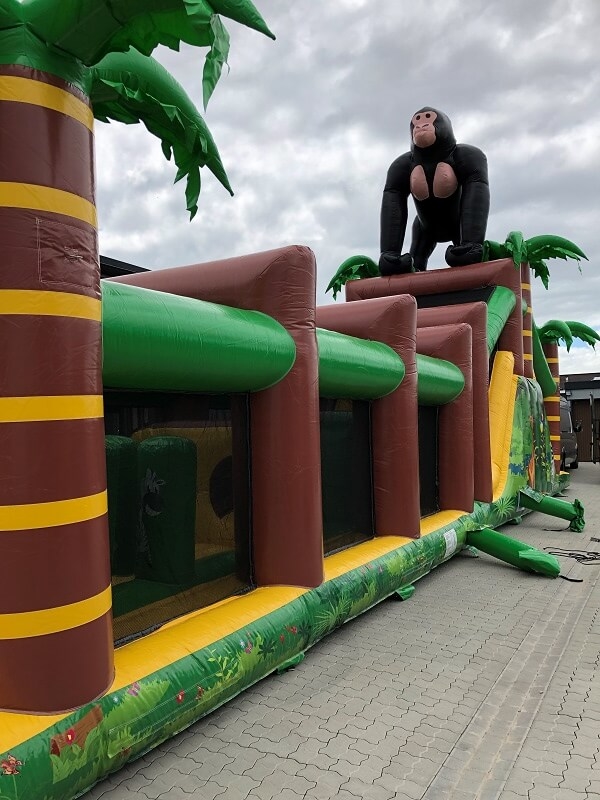 Kleine Forscher können in den Tiefen unserer riesigen Multiplay-Hüpfburg „Dschungelpfad“ (ehemals „Jungle-Track“) allerhand entdecken. Der große Gorilla lockt bereits von Weitem Ihre kleinen Veranstaltungsbesucher an. Das bunte Dschungel-Motiv lässt Kinderherzen höher schlagen! Bis zu 30 kleine Entdecker dürfen in der Riesen-Hüpfburg auf eine spannende Expedition gehen.