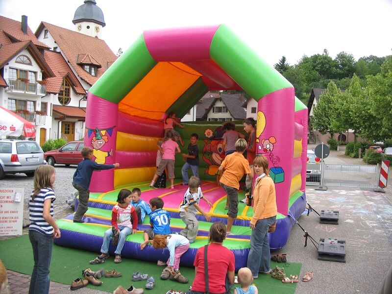 Bis zu zwölf Kinder können hier so richtig aufdrehen! Und auch schlechtes Wetter am Veranstaltungstag muss die Party-Stimmung nicht vermiesen, denn die Hüpfburg „Party“ bietet dank ihrer Überdachung einen effektiven Regen- aber auch Sonnenschutz. Die ständige Luftzirkulation wird durch die benetze Öffnung an der Rückwand der Hüpfburg garantiert. Auf dieser Party geht niemanden so schnell die Luft aus!