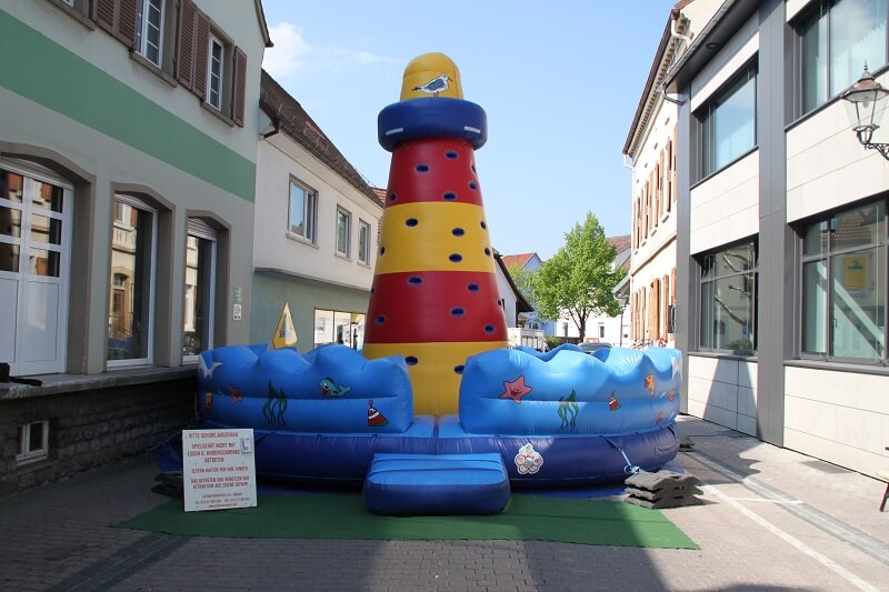 Dieser riesige Leuchtturm lädt zum Klettern und Hüpfen ein. Mit seiner Höhe von 4,40 Metern ist unser Hüpf-Kletter-Leuchtturm im wahrsten Sinne des Wortes ein Highlight für Events aller Art. Die Kinder können den rot-gelben Turm erklimmen oder sich an seinem Fuße austoben.