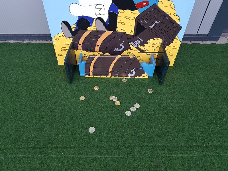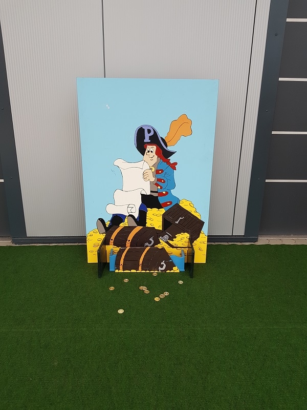 Wer schafft es die Kunststoffmünzen in die vorgesehene Schatzkiste zu werfen?!