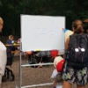 Malen mit einem 2,30 m langen Bundstift, auf einem Whiteboard.