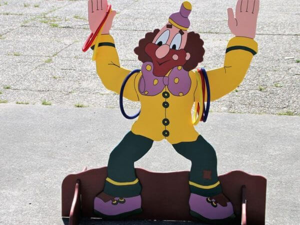 Ringwerfen gibt es in vielen verschiedenen Ausführungen. Doch keine macht so viel Spaß wie unser lustiger Clown! Er steht mit weit ausgestreckten Armen da, auf die die Werfer mit den Ringen zielen. Auch die Mütze des Clowns kann anvisiert werden. Wer schafft es, die meisten Ringe ins Ziel zu bringen?