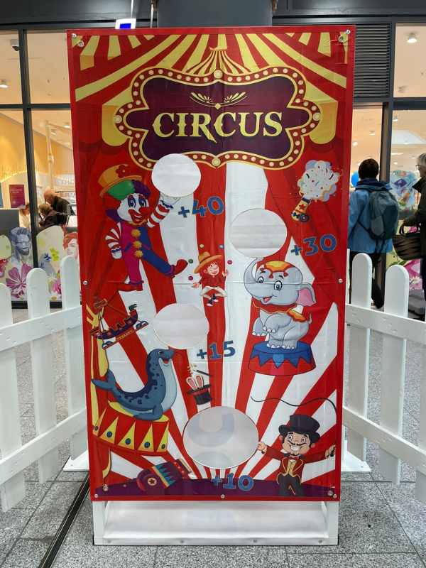 Säckchenwerfen-Spiel mit Zirkusmotiv