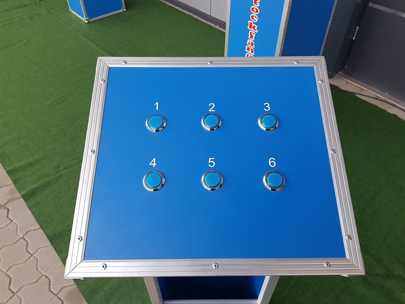 Der Betreuer kann über sein Steuerpult den Fall der Stöcke in einer beliebigen Reihenfolge auslösen.