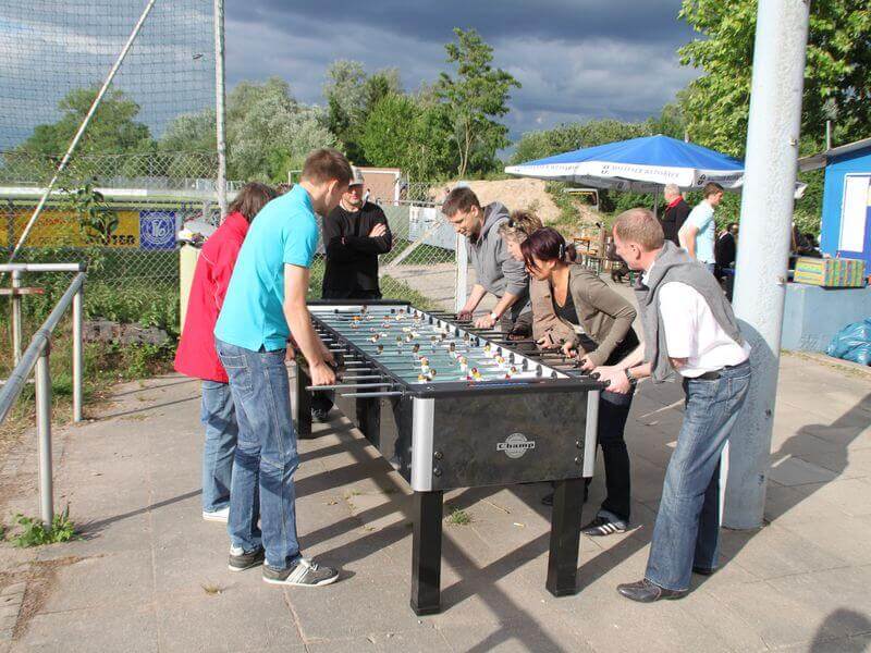 Unser XL-Kickertisch ist ein riesiger Spaß für Events aller Art. Bei Teambuilding-Maßnahmen oder Betriebsfeiern können Sie damit spielerisch das Zusammengehörigkeitsgefühl Ihrer Mitarbeiter schulen, denn bei dem riesigen Kicker für bis zu acht Spieler ist Teamwork gefragt. Auch auf Promotion-Events, Volksfesten oder einem Tag der offenen Tür kommt der Kickertisch XL bei Jung und Alt immer gut. Nicht nur Fußballfans machen hier gerne mit!