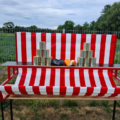 Verkauf: Dosenwurfstand mit Dosen und Bälle / rot-weiß gestreift (NEU)