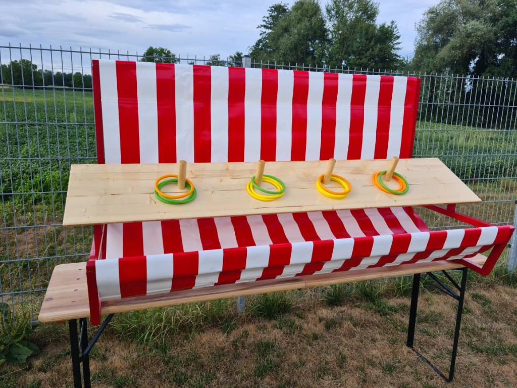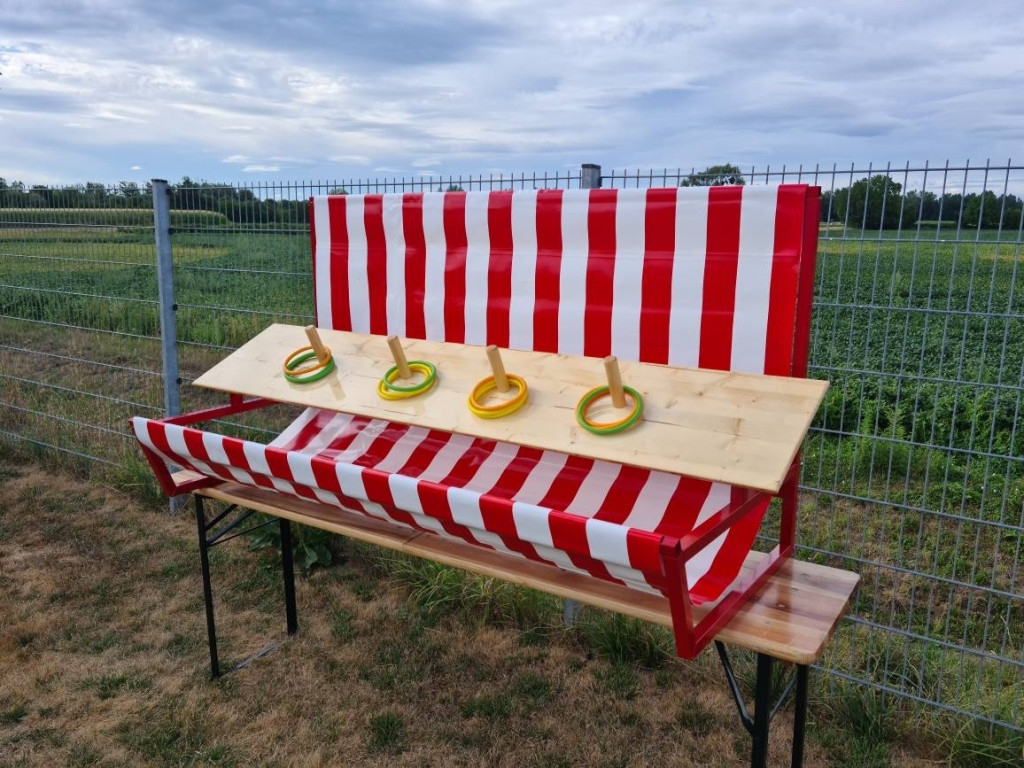 Verkauf: Ringwurfstand mit 12 Ringen / rot-weiß gestreift (NEU)