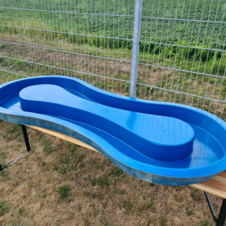 Auffangwanne aus rot-weiß gestreifter Plane.