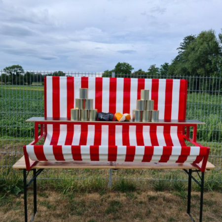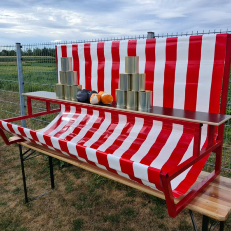 • Verkauf: Dosenwurfstand mit Dosen und Bälle / rot-weiß gestreift (NEU)