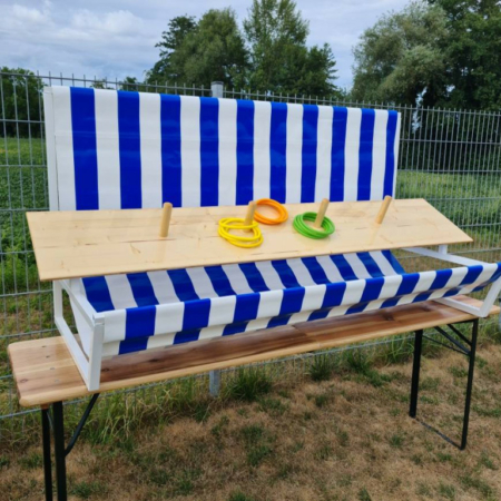 • Verkauf: Ringwurfstand mit 12 Ringen / blau-weiß gestreift (NEU)