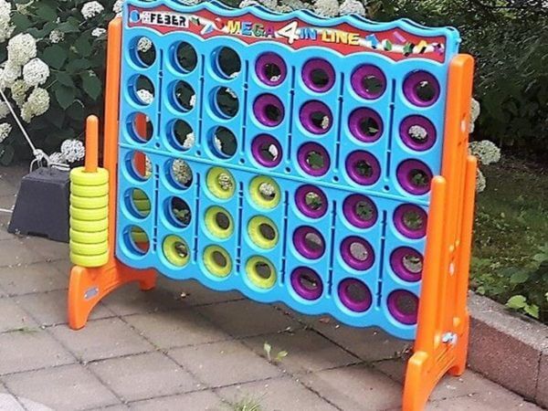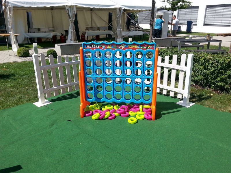 Unabhängig von der Altersklasse hat jeder Spaß an Vier gewinnt. Ziel des Strategiespiels ist es, vier Steine der eigenen Farbe senkrecht, waagerecht oder diagonal in eine Reihe zu bringen. Wenn alle Steine verbraucht wurden, ohne dass ein Spieler eine Viererreihe erreicht hat, endet das Spiel unentschieden. In der farbenfrohen XXL-Varianten ist Vier gewinnt eine tolle Attraktion für Events aller Art, die sich indoor und outdoor nutzen lässt.